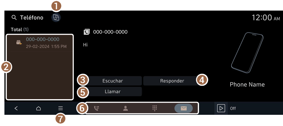 en la pestaña inferior de la pantalla del teléfono. - Seleccione un mensaje de la lista.