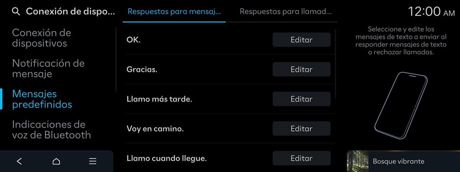 Seleccione y edite los mensajes de texto a enviar al responder mensajes de texto o rechazar llamadas.