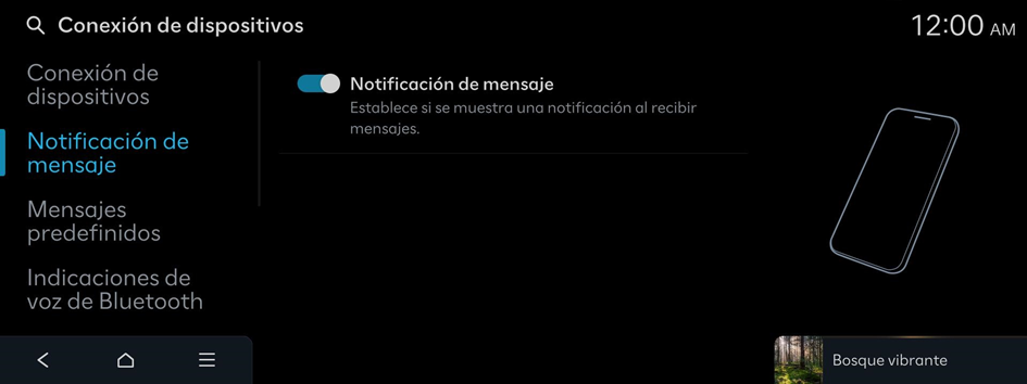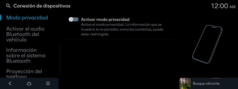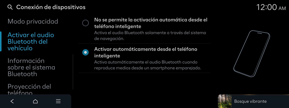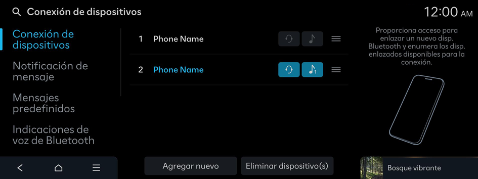 Administre los dispositivos Bluetooth o configure sus ajustes de funcionamiento. También puede activar la función de Proyección del teléfono para controlar la aplicación del teléfono celular desde la pantalla del sistema después de conectarlo.