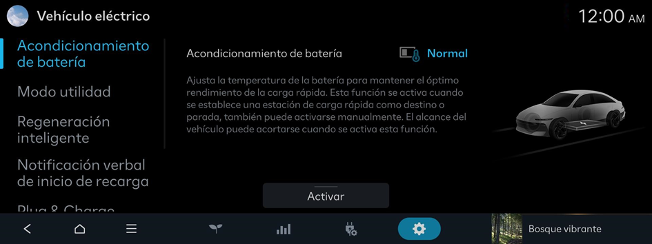 Aparece la pantalla de configuración del vehículo eléctrico.