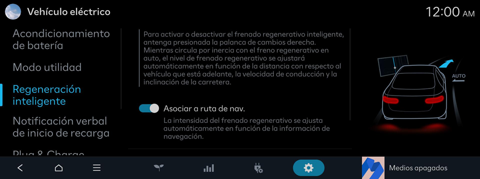 Mientras circula por inercia con el freno regenerativo en auto, el nivel de frenado regenerativo se ajustará automáticamente en función de la distancia con respecto al vehículo que está adelante, la velocidad de conducción y la inclinación de la carretera.