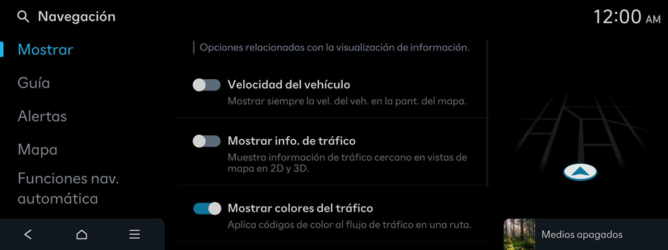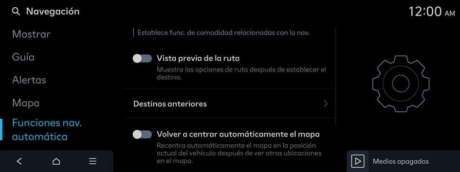 Aparecerá la pantalla de ajustes de navegación.