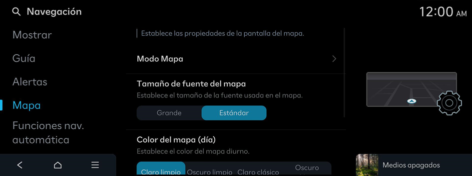 Puede configurar las operaciones de navegación, la visualización de la pantalla, la guía de voz y otros ajustes.