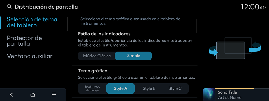 Selecciona el tema gráfico a ser usado en el tablero de instrumentos.