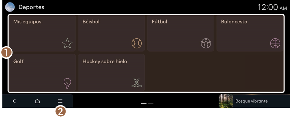 - En la pantalla de inicio, presione Deportes.