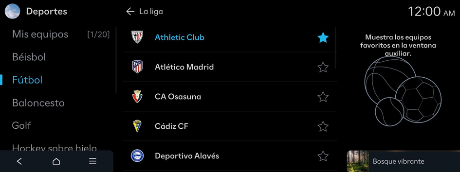- Permite seleccionar un deporte para ver su información. Establezca sus equipos favoritos como equipos de interés.