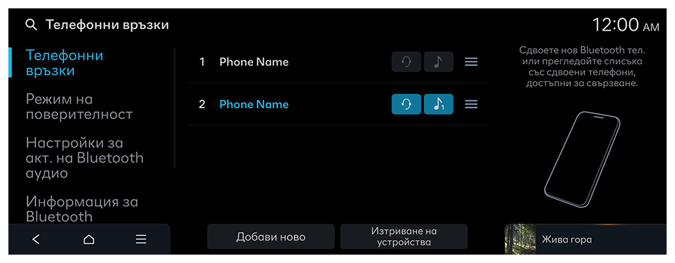 - На началния екран, натиснете Настройки ► Телефонни връзки ► Телефонни връзки ► Добави ново.