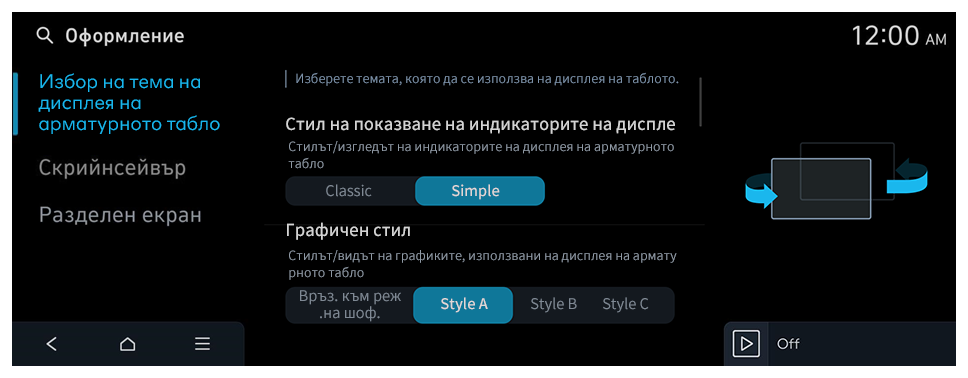 Стилът/изгледът на индикаторите на дисплея на арматурното табло.