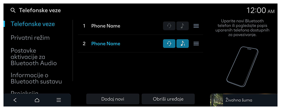 - Kada se koristite navigacijom pametnog telefona putem projekcije telefona, zvukovi iz medijske funkcije sustava i navigacije reproducirat će se kroz zvučnike vašeg vozila. Ako podesite glasnoću dok se reproduciraju oba zvuka, najprije se podešava glasnoća zvuka aplikacije za navigaciju.