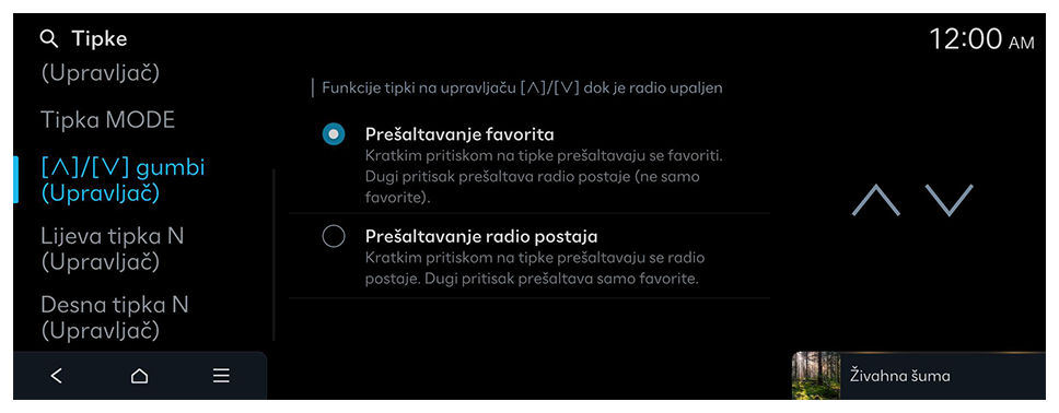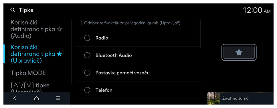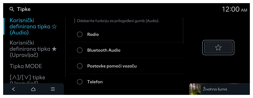 Odaberite funkciju za prilagođeni gumb (Audio).