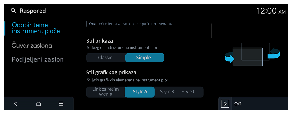 - Dostupne postavke mogu se razlikovati ovisno o modelu vozila i specifikacijama.