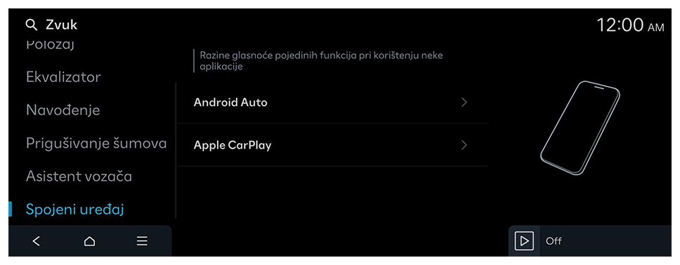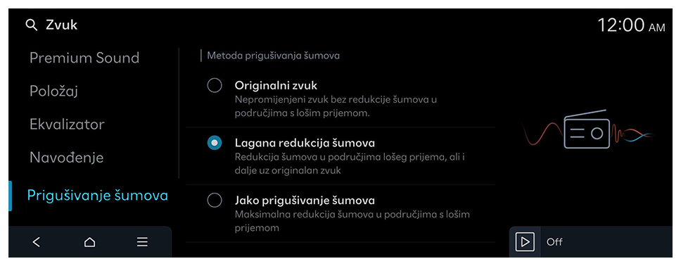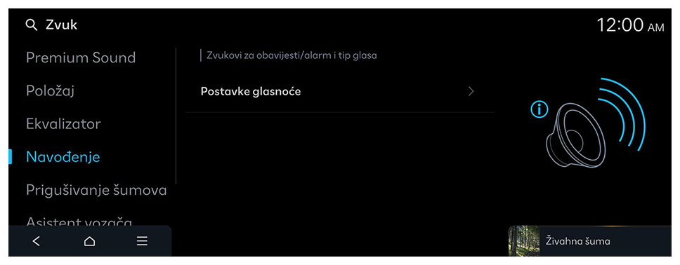 Stišavanje svih ostalih zvukova dok se reproducira zvuk upozorenja za sigurnost vožnje.