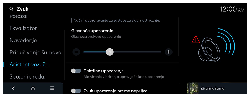 Uključite ili isključite zvuk upozorenja za pozornost naprijed.