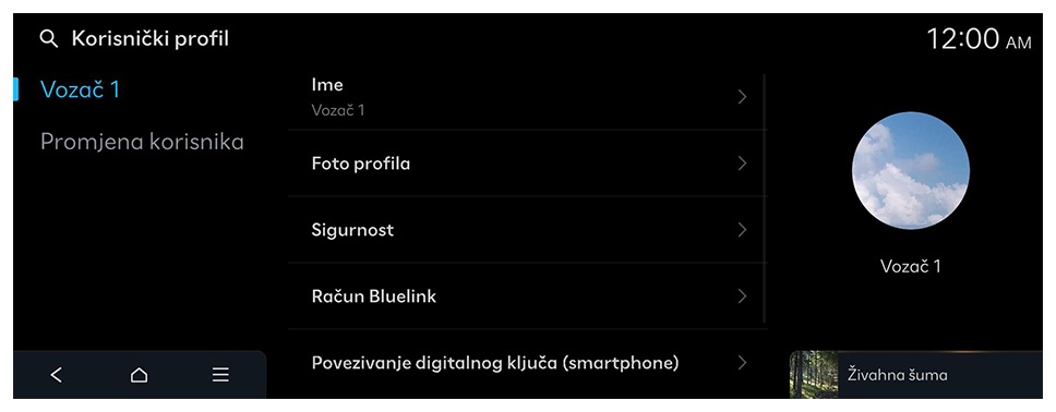 Možete dodatno postaviti profile za svakog vozača nakon postavljanja prvog pokretanja.