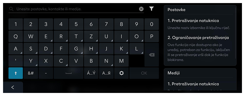 , ako je ikona prikazana na zaslonu. - Rezultati pretraživanja daju se sekvencijalno na temelju strukture ponuđenog izbornika i informacija u različitim načinima rada.