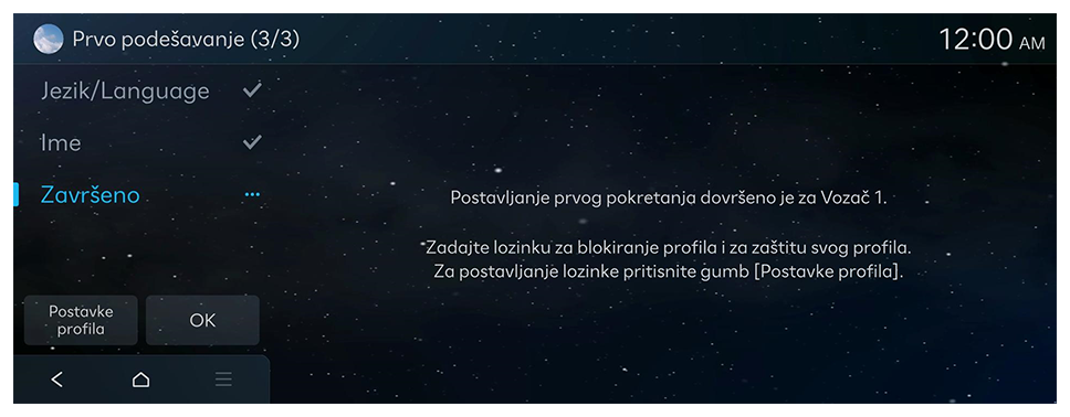- Kada se pojavi zaslon za postavljanje prvog pokretanja, pritisnite OK.
