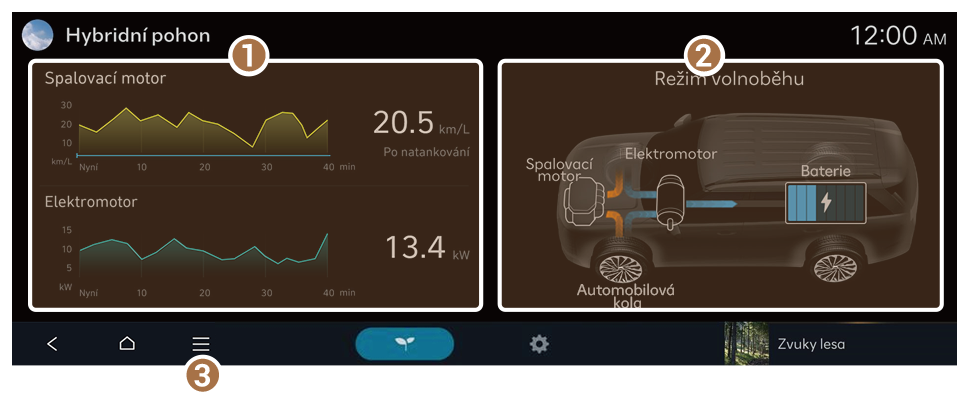 ![]() | Jízda s využitím výkonu motoru a elektromotoru |