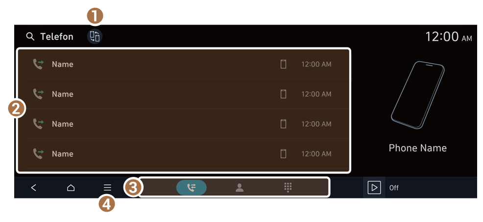 - Stáhnout: Stažení seznamu posledních hovorů z připojeného mobilního zařízení.