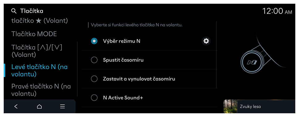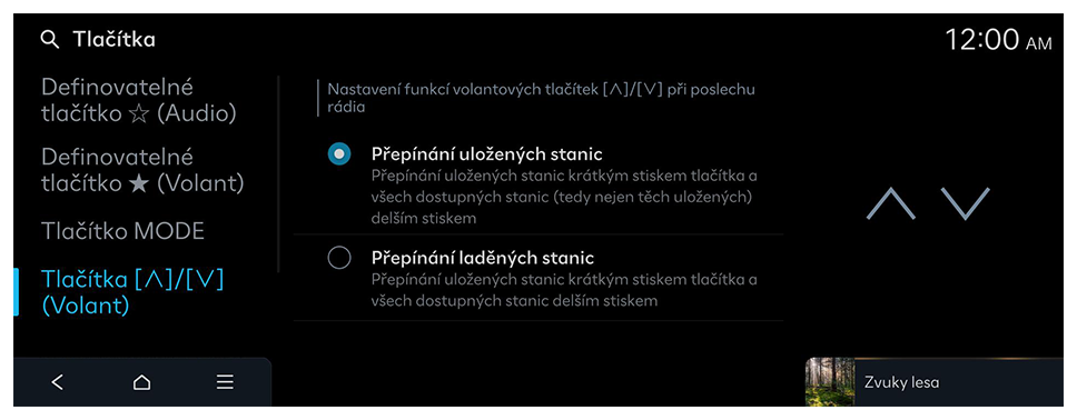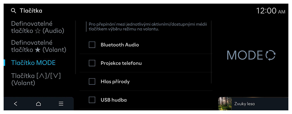 Konfigurace funkcí, které se mají aktivovat při stisknutí tlačítek na ovládacím panelu nebo na volantu.