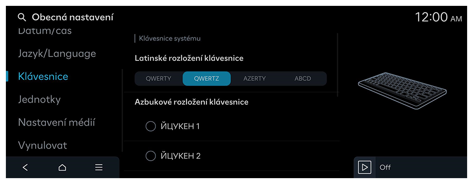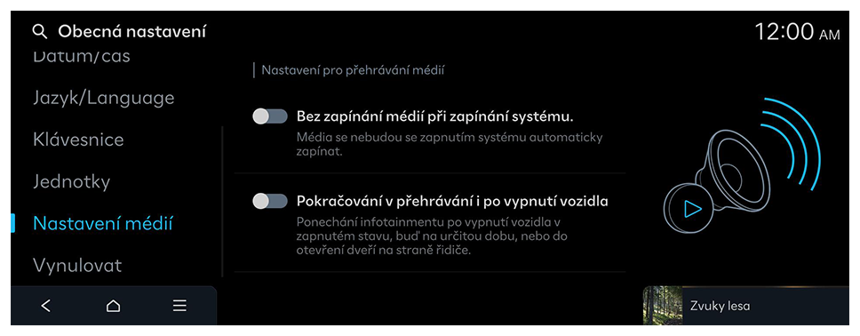 Výběr jednotek pro vzdálenost a rychlost vozidla, které se mají zobrazit na displeji.