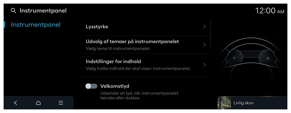 - På startskærmen skal du trykke på Indstillinger ► Instrumentpanel.