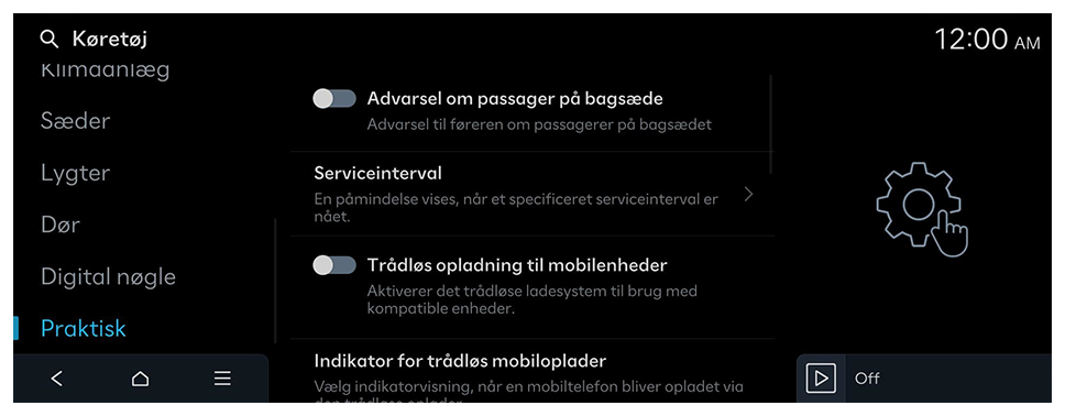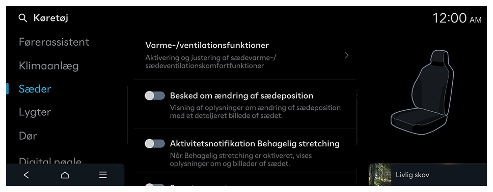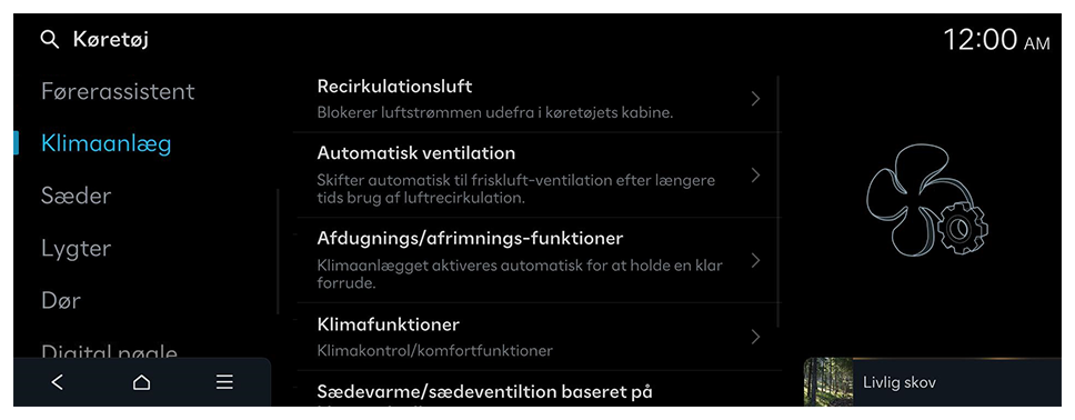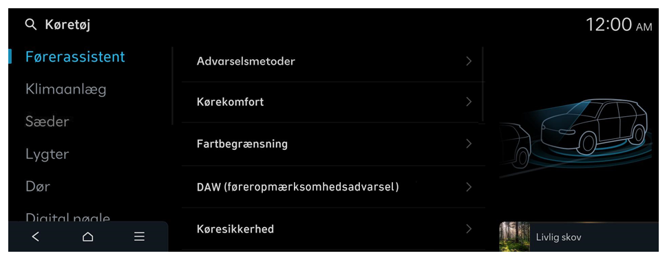 - Tilgængelige indstillinger kan variere afhængigt af køretøjsmodellen og -specifikationerne.
