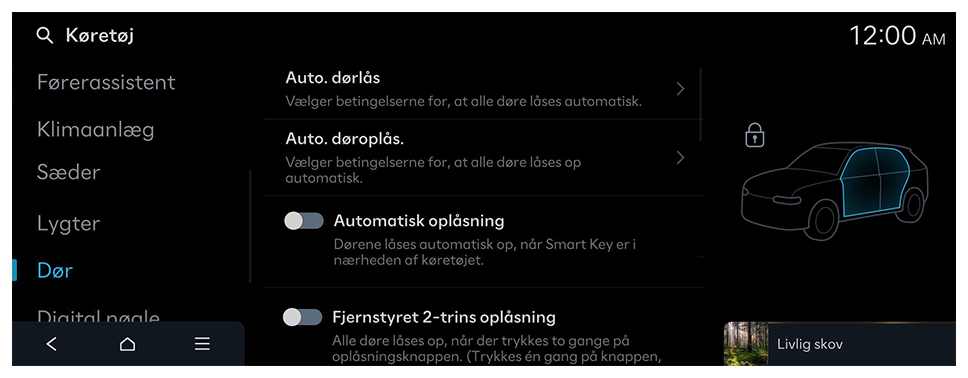 Vælg, hvilke døre der skal låses op, når føreren nærmer sig køretøjet med Smart Key eller trykker på knappen på dørhåndtaget.