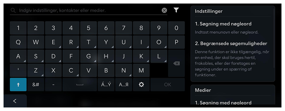 , hvis ikonet vises på skærmen. - Søgeresultater anføres efter hinanden baseret på den anførte menus struktur og oplysningerne i forskellige modi.