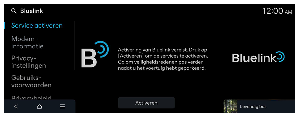 - Tik in het startscherm op Instellingen ► Bluelink ► Service activeren.