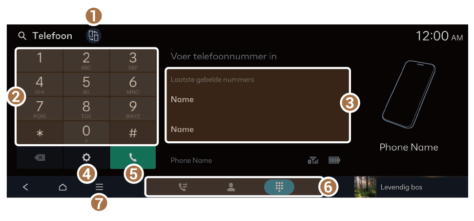 - Als u recente oproepen op uw systeem hebt opgeslagen, kunt u de volgende functie gebruiken voordat u een telefoonnummer invoert.
