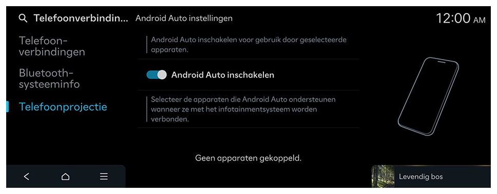 - Druk in het startscherm op Instellingen ► Telefoonverbindingen ► Telefoonprojectie ► Android Auto instellingen en schakel vervolgens Android Auto inschakelen in.