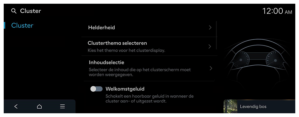 Selecteer de inhoud die op het clusterscherm moet worden weergegeven.