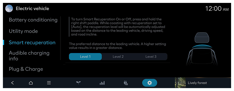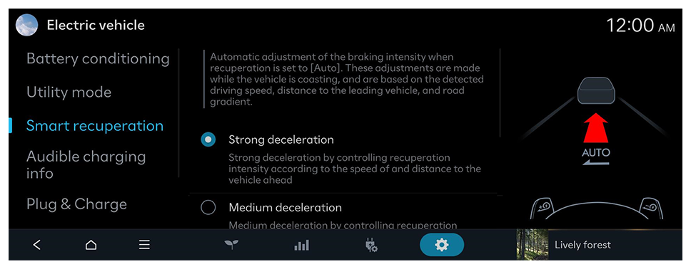 Automatic adjustment of the braking intensity when recuperation is set to [Auto]. These adjustments are made while the vehicle is coasting, and are based on the detected driving speed, distance to the leading vehicle, and road gradient.