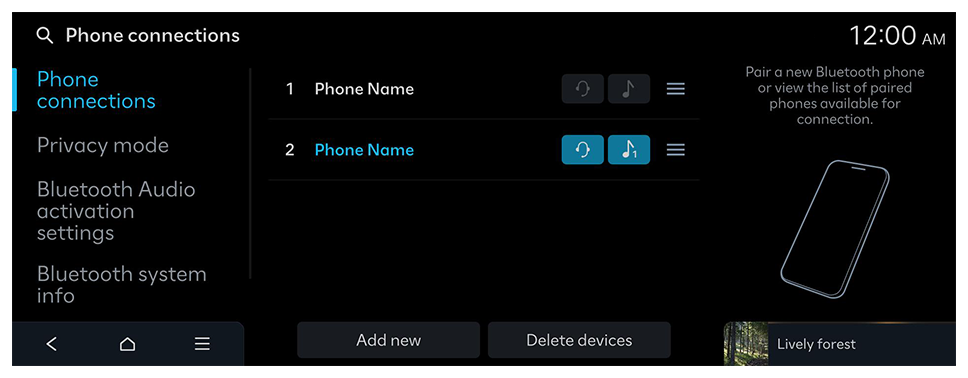 Pair a new Bluetooth phone or list the paired phones available for connection.