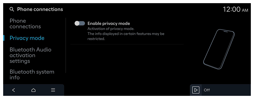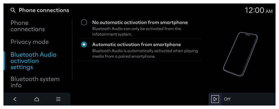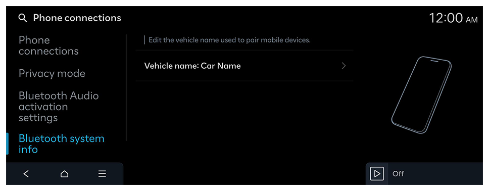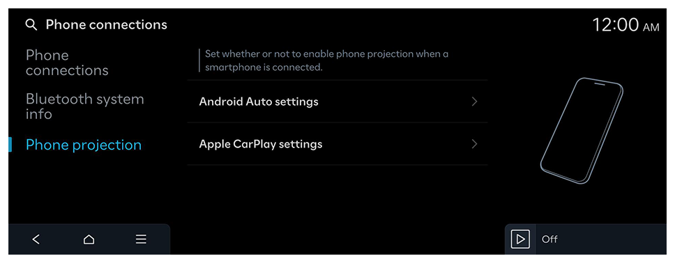 Manage Bluetooth devices or configure their operation settings. You can also activate the phone projection so that you can control the smartphone App from the system screen after connecting the smartphone to the system.