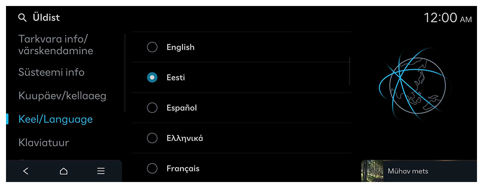 Aeg seadistatakse automaatselt GPS-i kaudu (sõiduki asukoha põhjal) või võrgu kaudu.