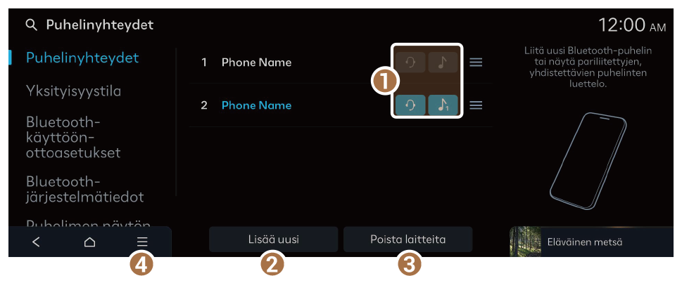 - Jos Bluetooth-laitteesi on matkapuhelin ja haluat ladata yhteystiedot puhelimesta järjestelmään, hyväksy yhteydenmuodostuspyyntö puhelimesta.