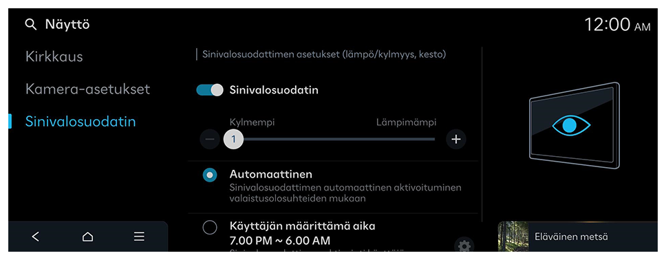 Näytön kirkkauden automaattinen säätäminen ympäristön valoisuuden mukaan.