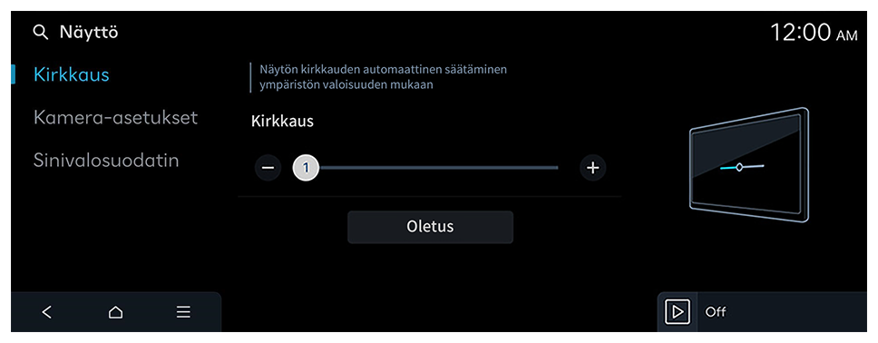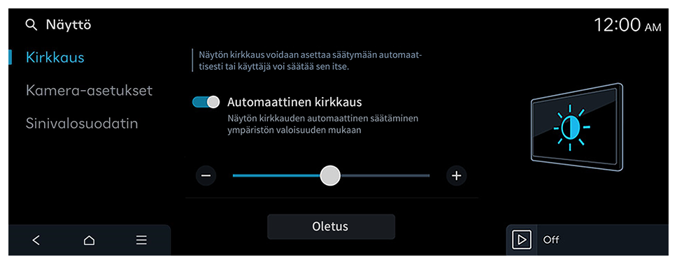 Näytön kirkkaus voidaan asettaa säätymään automaattisesti tai käyttäjä voi säätää sen itse.