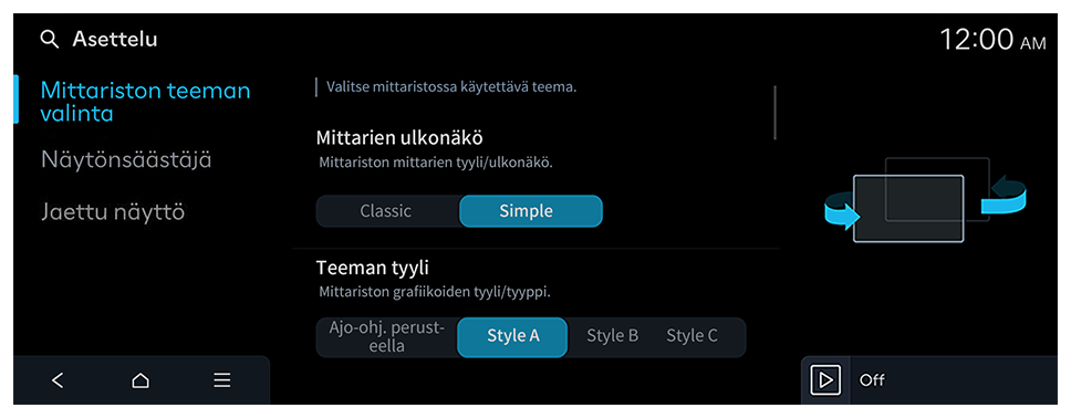 - Käytettävissä olevat asetukset voivat vaihdella auton mallin ja teknisten tietojen mukaan.