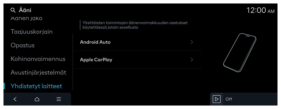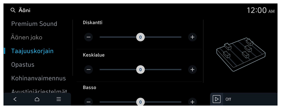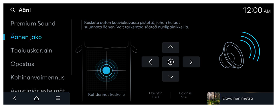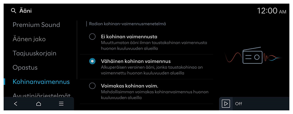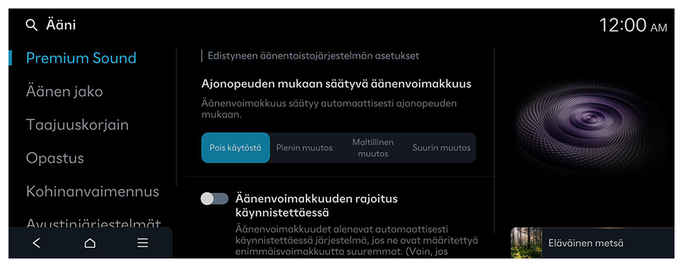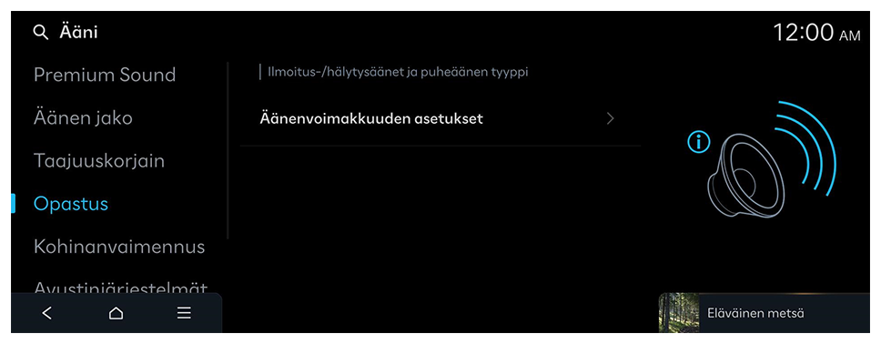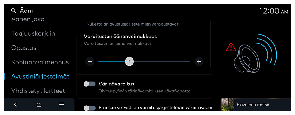 Kaista-ajon varoitusääni otetaan käyttöön. Varoitusääntä ei voi poistaa käytöstä, jos ohjauspyörän haptinen varoitus on pois päältä.