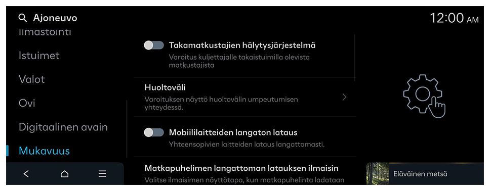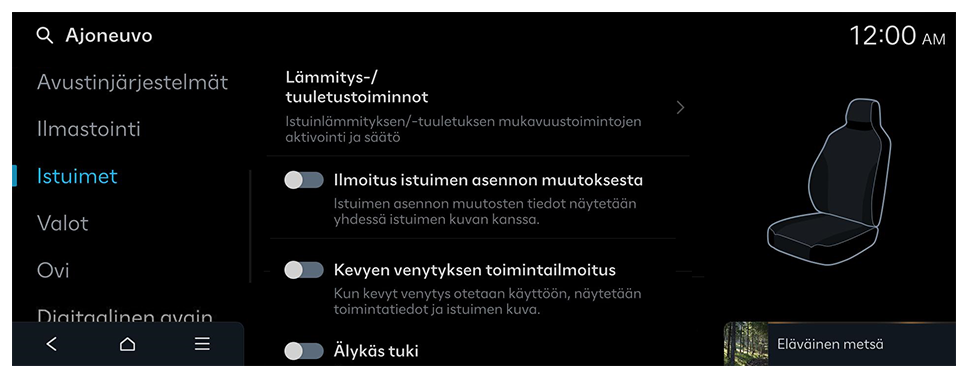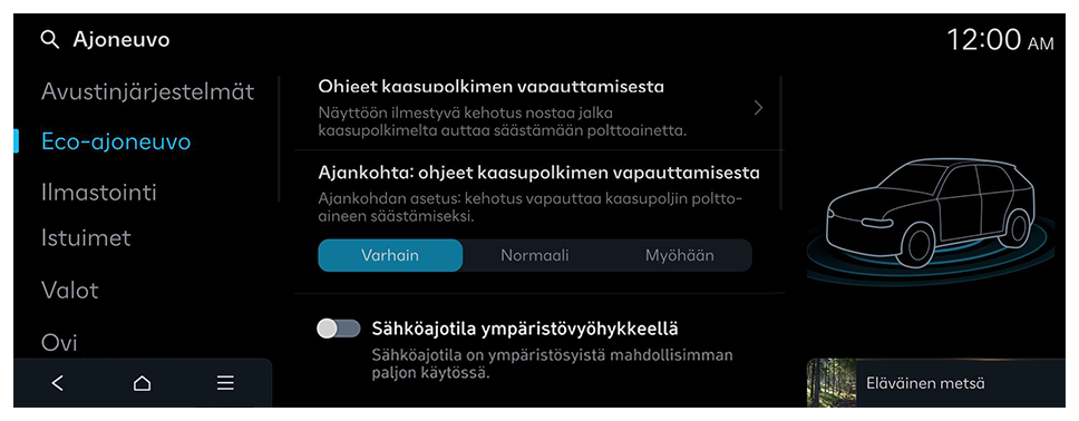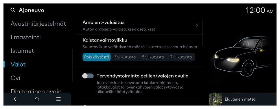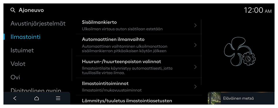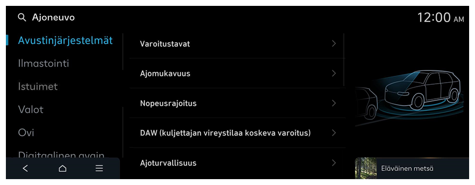 - Käytettävissä olevat asetukset voivat vaihdella auton mallin ja teknisten tietojen mukaan.