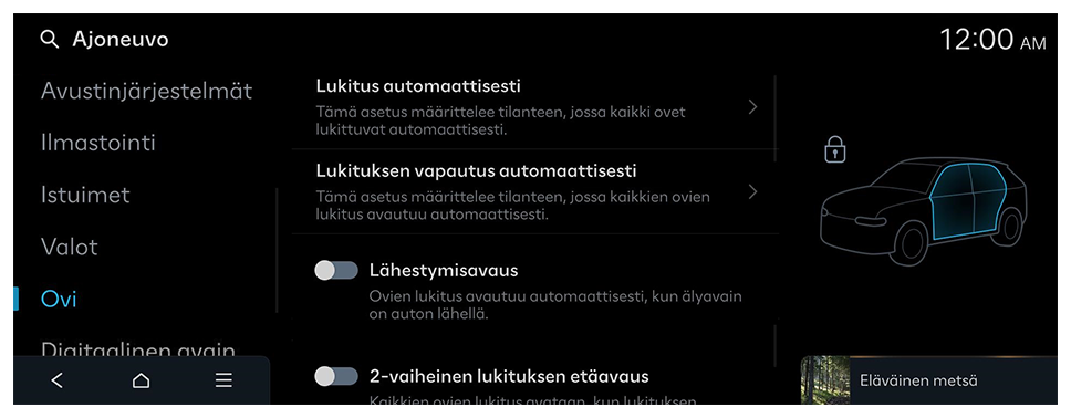 Voit määrittää takaluukun ja ovien toimintaympäristön.