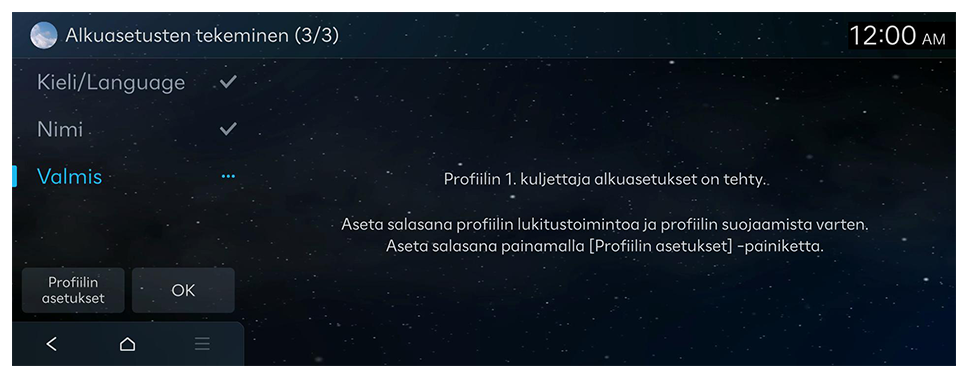 - Kun alkuasetusten näyttö tulee näkyviin, paina OK.