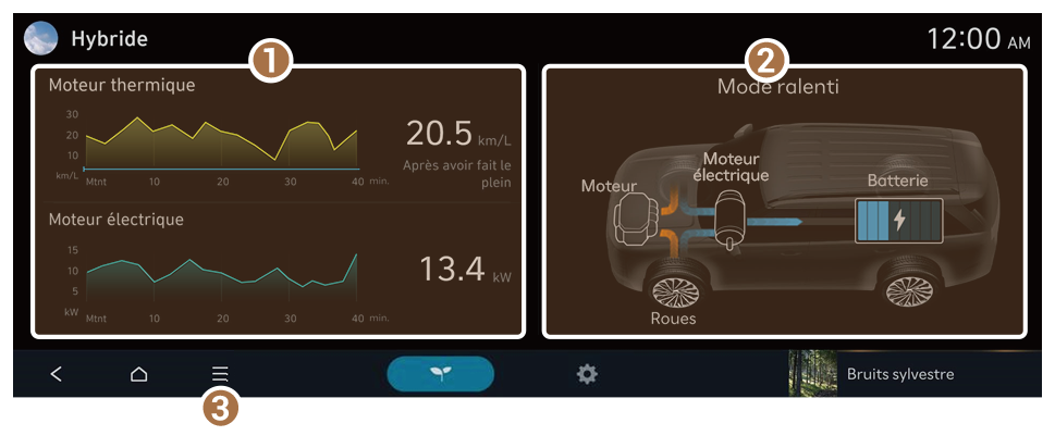 ![]() | Conduite avec le moteur thermique et le moteur électrique |
