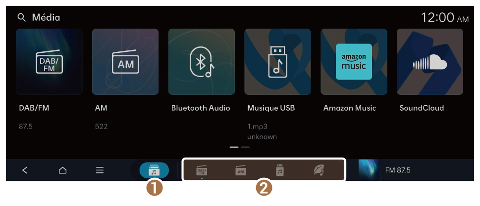 - Sur l’écran d’accueil ou l’écran Média, appuyez sur