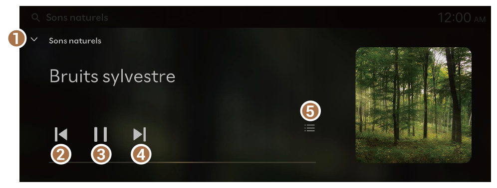 Changez le mode média. Recherchez et écoutez les Sons naturels souhaités.