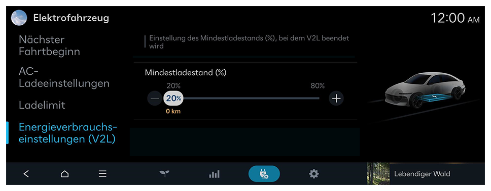 Der Standmodus verwendet den Akku, um elektrische Geräte bei längeren Pausen oder beim Camping mit Strom zu versorgen. Dadurch können z. B. Infotainmentsystem, Klimaanlage oder Innenraumbeleuchtung verwendet werden.