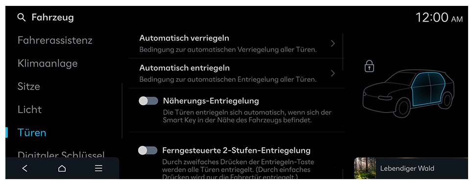 Wählen Sie aus, welche Türen entriegelt werden sollen, wenn sich der Fahrer mit dem Smart Key dem Fahrzeug nähert oder wenn die Taste am Türgriff betätigt wird.