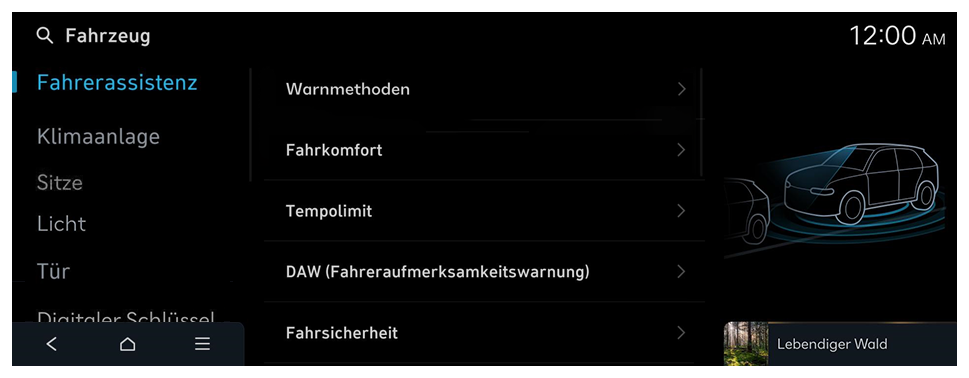 - Die verfügbaren Einstellungen variieren je nach Fahrzeugmodell und Spezifikationen.